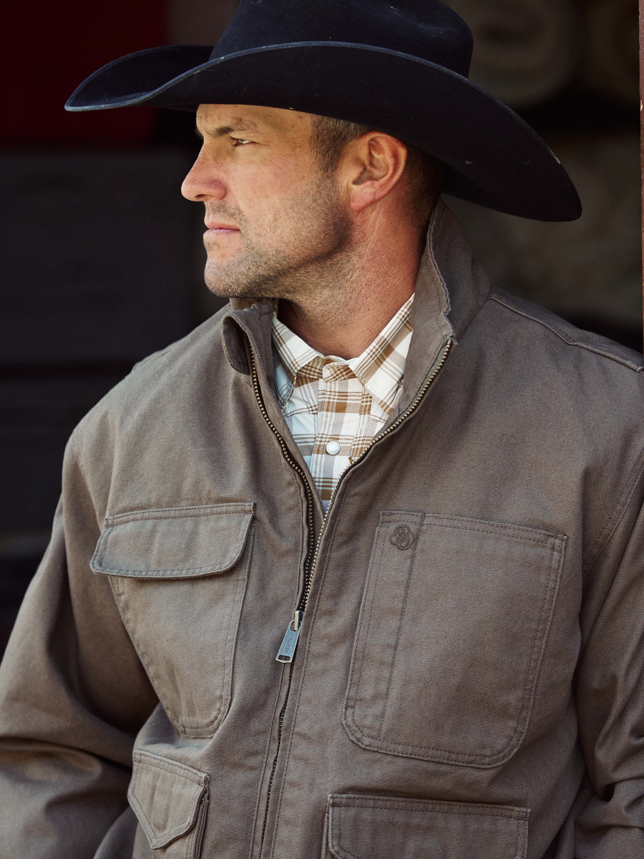 The ultimate ranch jacket. 7-Pocket front for maximum storage with bi-swing pleat at the back armholes, underarm gusset, and pleated elbows for 360° range of motion. A quilted liner adds extra warmth, while snap-out riding vents allow for in-saddle wear.